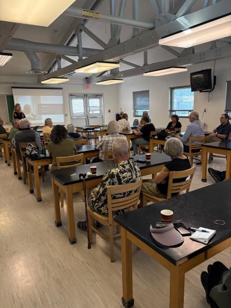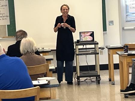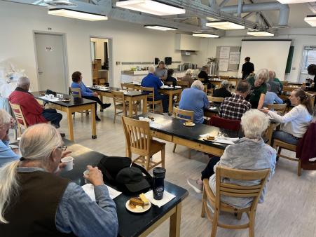 Andrea talked about coffee; Where and how it's grown and its different varieties and characteristics. Then brought samples and foods to judge the different types of coffee with their unique taste, smell, and consistency. The event was well received by the attendees.